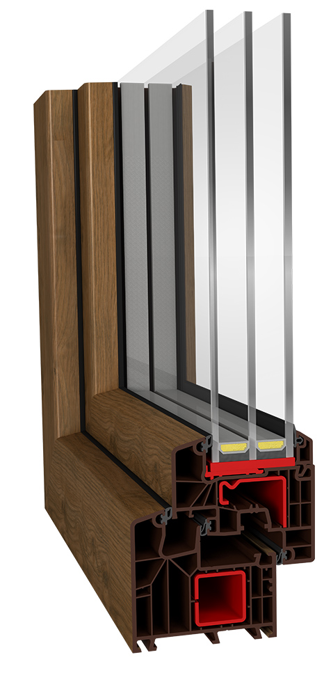 Серията IDEAL 8000 е диамантът в короната при профилите Алупласт. С широчината си от 85 мм на касата, дебелината на стените, разделящи камерите в крилото и касата, този профил е изключително стабилен, масивен, изолиращ от шум и пазещ дома ви от атмосферни влияния. Първокласният комфорт и удоволствието от времето прекарано удома са гарантирани, когато ние произведем вашите врати и прозорци с тази серия профили. Добавяйки троен стъклопакет с добри параметри, правим коефицентът на топлоизолация на целия прозорец около впечатляващите Uw=0.70 W/m2K.  Профилите Ideal 8000 съчетават в едно най-доброто от Ideal 5000- третото уплътнение, и Ideal 7000-масивност, здравина, изолация. В профила на касата и крилото е добавено и трето уплътнение освен стандартните две нива на уплътняване. Това допълнително подобрява топлоизолационните и шумоизолационните качества на профила. Друго предимство е, че обковът се поставя в канала, намиращ се в пространството между средното и вътрешното уплътнение. Така обковът напълно се изолира от външни атмосферни влияния, което му гарантира още по-дълъг и безпроблемен период на експлоатация. Третото междинно уплътнение е причината и за подобрената устойчивост на профила против взлом в дома ви.